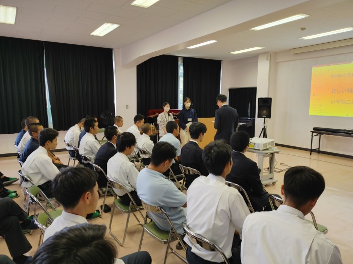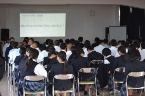10月30日(木)に2・3年生は西彼保健所保健師の福本様、北橋様をお招きして「望まない妊娠・性感染症を防ぐために―今の私たちにできること―」という内容で思春期教室を実施していただきました。