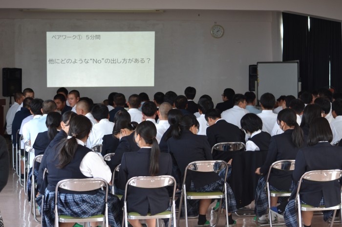 実際に起こった事例から「性行為に対する同意と責任とは?」を考えたり、ペアワークの中で自分が嫌だと感じた時にしっかり相手に伝える練習をしたりして、高校生である自分たちが望まない妊娠をしないためにできることを学びました。