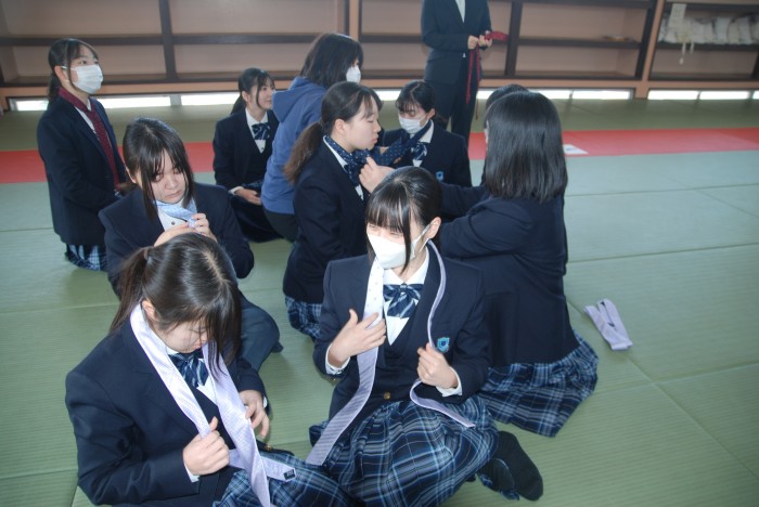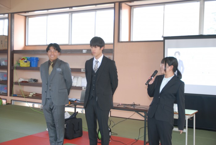 2時間目には、フタタ稲佐山店 店長内野秀隆様をお招きし、スーツ着こなしセミナーを行いました。