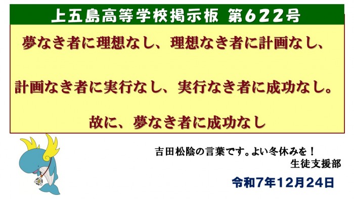 上高掲示板は、上高職員が生徒に送る応援メッセージです。