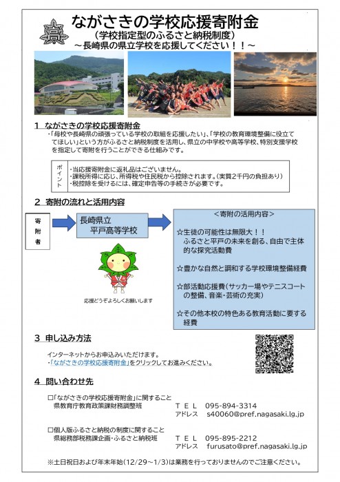 学校指定型ふるさと納税制度「ながさきの学校応援寄附金」が開設されました。