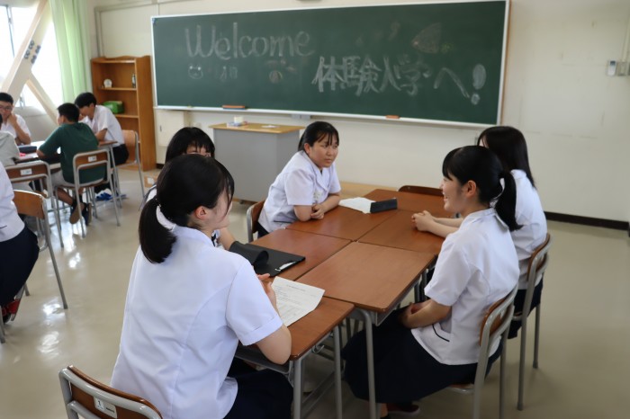 22日は学校の離島留学体験入学として、体験授業や、離島留学在校生の体験発表、交流会などを行いました。