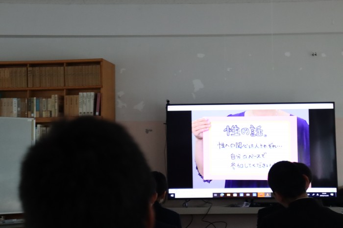 最後には、『自分と相手を大切にするって?』という産婦人科医の方が学生の時に制作したDVDも見せていただき、生徒は性に関することを自分事として捉え、性について学ぶことや考えることの大切さを感じることができたのではないかと思います。