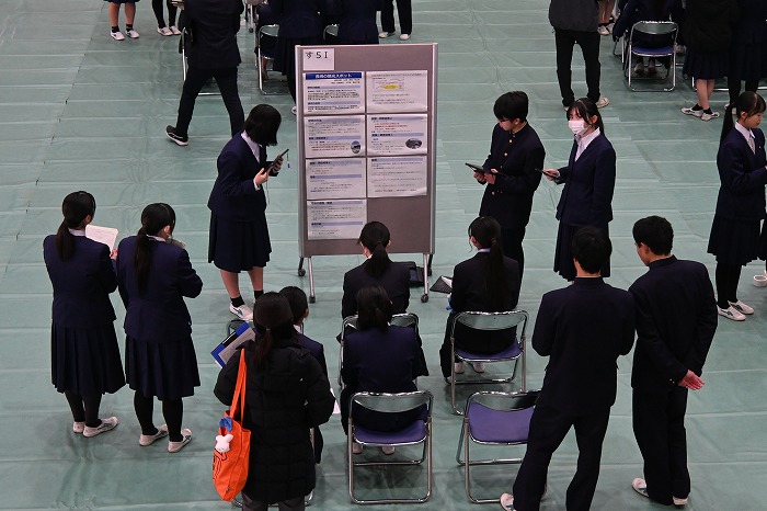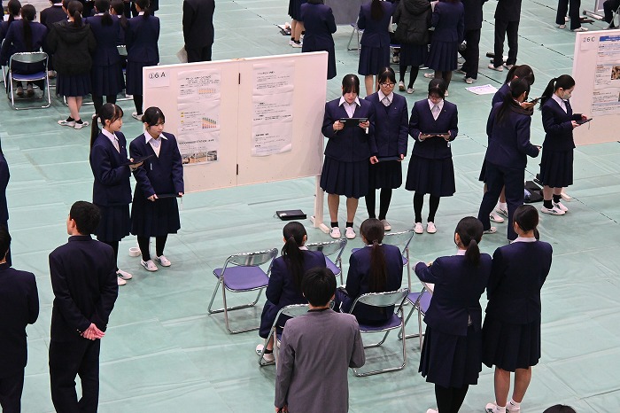 令和7年度2月2日(月)に2年普通科総合的な探究の時間の本発表(ポスター発表会)が行われました。39グループがそれぞれのテーマでポスター作成をし、発表をしました。地域の方にも多数参観していただき、ありがとうございました。