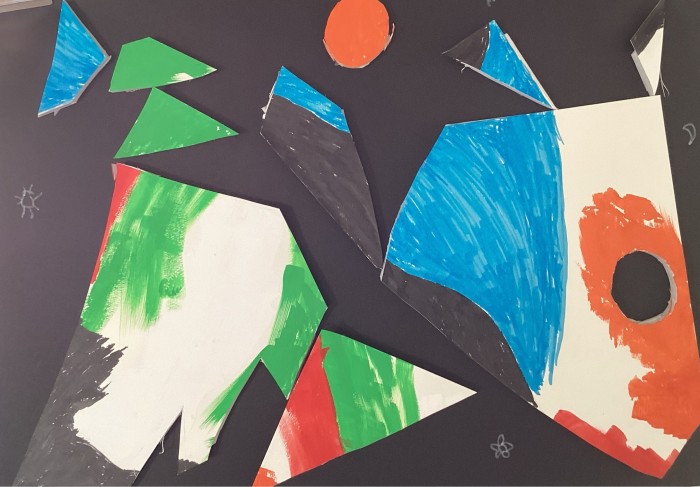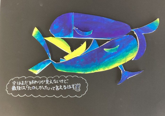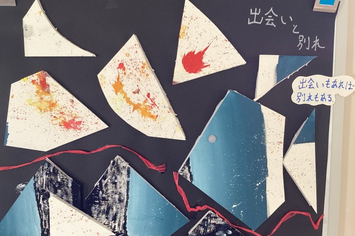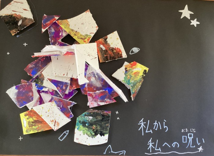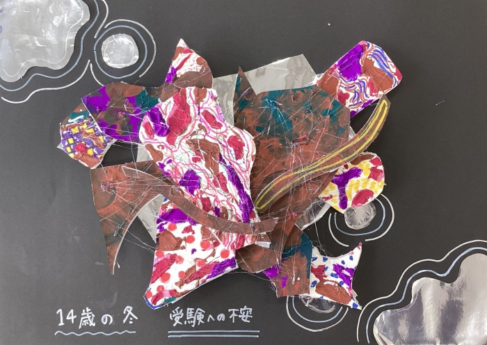 中学部3年生の『形と色の挑戦』という単元で制作した作品です♪着色した紙を、さらに再構成して形を生み出していく生徒たちの姿がとても生き生きしていました。生徒たちの心の声が聞こえてきそうな作品が仕上がりました。
