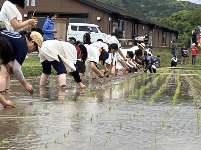 東アジア歴史・中国語コースの生徒が壱岐市年中行事の「お田植え祭」に参加しました。みんなで弥生時代の服装、貫頭衣を着て、昔ながらの手作業で古代米の植え付けをしました。古代米作りは、五穀豊穣を祈念する「さなぶりの祭り」が来月実施予定です。そして秋の「刈り入れ祭」「収穫祭」へとつながっていくそうです。自分たちで植えた古代米を収穫するのが楽しみです。イベントを通じて、生徒たちも壱岐市で体験できる歴史の面白さを実感できました。