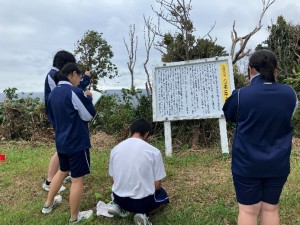 ▲旧日本海軍見張所にて熱心にメモを取ります。
