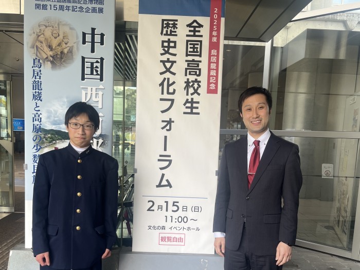 令和8年2月15日(日)に徳島県立鳥居龍蔵記念博物館で行われた全国高校生歴史文化フォーラムで発表を行いました。発表後は質疑や助言をいただき、今後の研究の糧となりました。また、他校の幅広いテーマや地域に関する発表を聴き、学びを深める機会となりました。3年次でも、さらに研究を深めていきたいと思います。