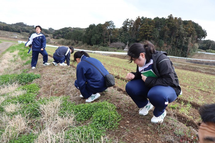 ▲地表調査では「先生!これは弥生土器の欠片ですか?」と目を輝かせていました。