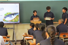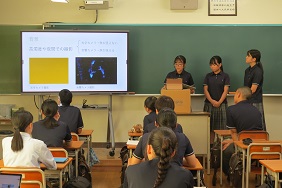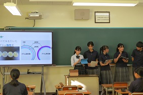 10/10(金)8月末に実施した長崎大学水産学部での研修内容や実験結果についてまとめて発表をしました。水産学部の先生方もオンラインで参加してくださり、生徒たちの発表への助言をいただきました。先生方、ご協力ありがとうございました。
