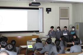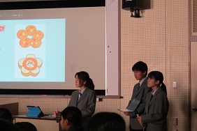 中間発表で新たに分かった課題に取り組むために調査や考察を重ね、材料、味、パッケージ、価格など更に工夫された内容になっていました。文理探究科2年も参加し、質疑応答も盛んに行われました。