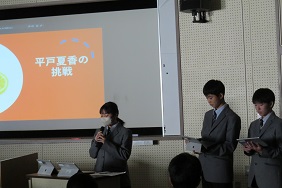 ひらど旨かもん組合、エレナ田平店、国分九州のみなさまのご協力をいただきながら文理探究科1年生が平戸の名物商品を考案し、その成果を発表しました。