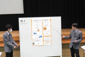 平戸市の文化センターで文理探究発表会を開催しました。1年間取り組んだ探究内容を文理探究科2年性がポスターにまとめて発表しました。今年は、文理探究科1年生の代表班の口頭発表も行いました。長崎総合科学大学の藤原教授をお招きし、最後に指導助言をいただきました。保護者や中学校の先生方など多くの方にも観覧いただきありがとうございました。