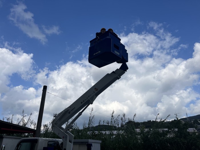 土木科では、単管パイプで作ったシーソーやピンボール、木工作品の販売、高所作業車の乗車体験