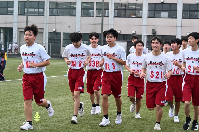 天候にも恵まれ、1年生と2年生がジョギングと駅伝で汗を流しました。