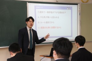 講師は株式会社ジンジブの荒牧歩福様で、「社会人として求められる基本的なマナーと考え方」という題で話をしていただきました。