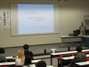 堀田様のお話しの中で、「現在長崎県内の被爆者の語り部は約40人ぐらいしかいません」という説明がありました。本校の生徒たちには、被爆者の方の生の声を聞ける今日の貴重な経験を大切にし、不安定さが増す今日の国際情勢だからこそ、平和の尊さを伝えていってほしいと願っています。