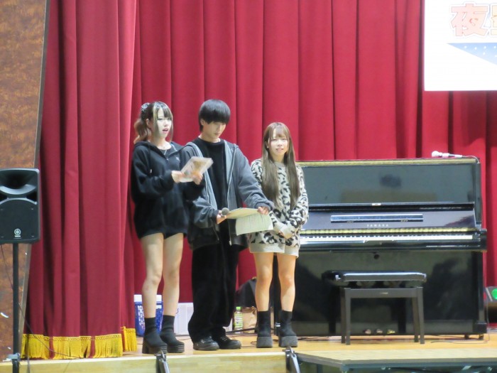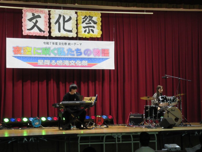 演奏終了後の文化祭実行委員長のあいさつでは、4年次生の森くんが「鳴滝高校の生徒が最も楽しみにしているイベントです。入念に準備してきたので、みんなの心に残る文化祭にできたら嬉しいです」と述べました。