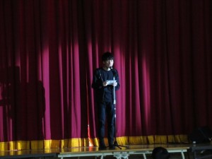 プログラム2番は、3年1組の総合的な探究の時間の発表『はじまりは長崎だった』です。『ふるさと長崎』が初めてのものを調べ、パワーポイントを使って発表しました。生徒たちや来場された皆様も知らないことが多かったのか、会場からは感心のため息がもれていました。