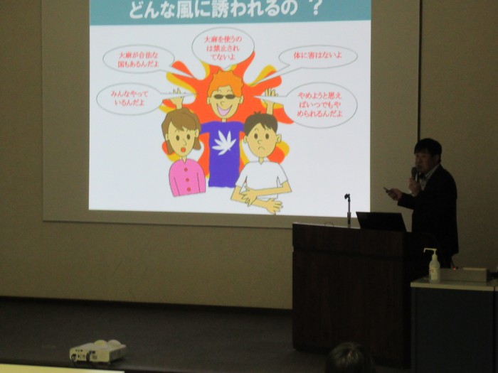 特に、薬物乱用者の70%以上を10代から20代の若者が占めており、今年の5月には県内の高校生が大麻で逮捕されたというお話しの際は、生徒たちも『自分たちの身近にもあり得ることだ』と感じたようで、真剣に聴き入っていました。