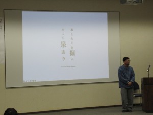 今年度は、日々研究所株式会社代表取締役、(一社)東彼杵ひとこともの公社代表理事をお務めの森一峻様を講師にお招きし、『あしもとを掘れ、そこに泉あり』というテーマで講演をしていただきました。