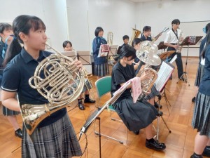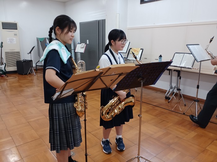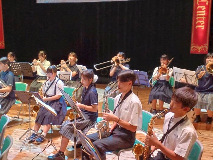 10月4日(土)14:00から平戸文化センター大ホールで開催された「第40回国民文化祭、第25回全国障害者芸術・文化祭 ながさきピース文化祭2025 ひらど文化まつり!国文祭すぺしゃる」小中高生の部で4曲演奏してきました。3年生が引退して初めての大舞台でしたが、堂々とした演奏とユニークな演出で会場を猶興館の音で満たしてきました。夏休みから1曲1曲を丁寧に仕上げるため、生徒同士で何度もセッションを行い納得のいくものに仕上げました。また近隣の学校と合同演奏する機会があり、約40人の大迫力の演奏を体験することもできました。当日の朝のリハーサルや本番までの時間を有効に活用して教えあったり、ステージでリラックスできるように声を掛け合ったりと普段できない体験をすることもできました。応援ありがとうございました。