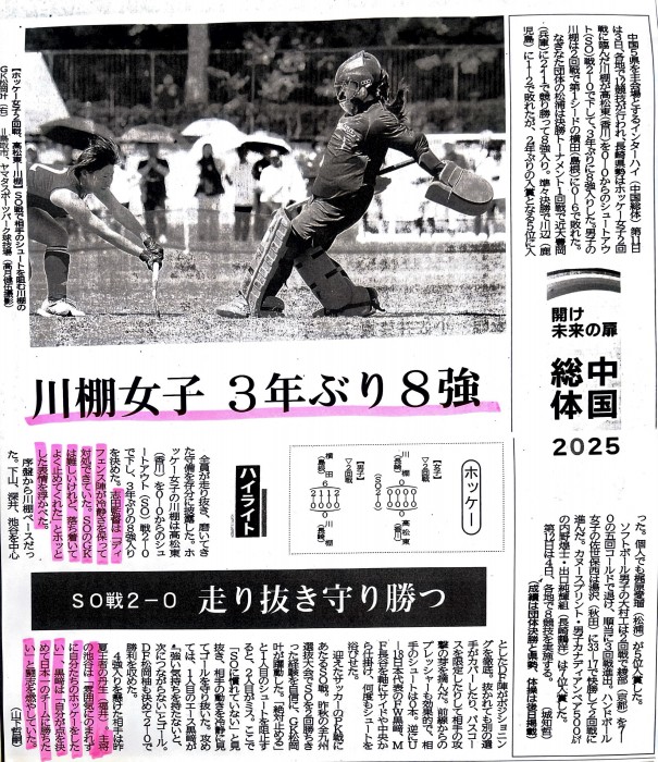8月2日、3日に行われた中国総体(インターハイ)での男女ホッケー部の試合が