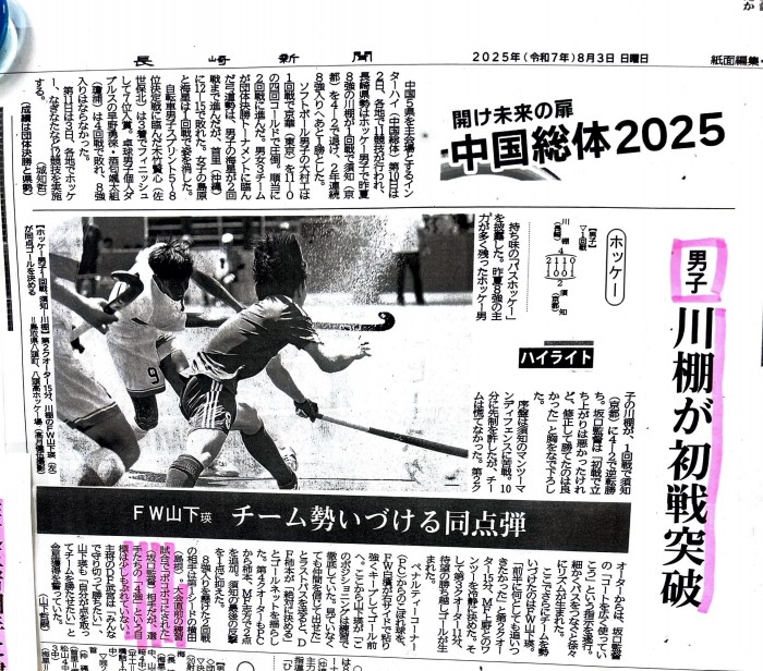長崎新聞に本校ホッケー部のインターハイ出場が掲載されました