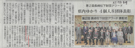 10月8日(水)長崎新聞掲載記事をご紹介します。