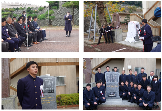 12月11日(木)、本校野球部の選抜高等学校野球大会を記念し、野球部特別後援会より記念碑の寄附を受け、除幕式を行いました。