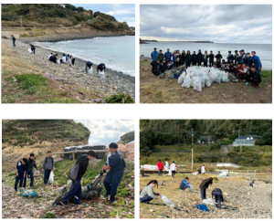 12月6日(土)ヒューマンハート部が石田町塩津浜で海岸清掃活動をしました。一般参加者を募ったところ、陸上部と個人参加あわせて17名が一緒に活動しました。