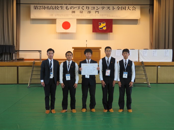 11月8日、9日に高知県立高知工業高等学校で実施されました。全国大会には4年ぶり6回目の出場で、測量部門九州ブロック代表として土木技術部3年岩永陽星、来山孝志、井元健太、2年光武優心のチームが出場しました。 各ブロック大会を勝ち抜いた9校と開催県枠1校の計10校で競われました。大会当日は雨の影響で雨天時の課題で実施されました。選手は設定タイムどおり計算を終え、自分達の力を100%発揮しましたが、惜しくも4位という結果でした。応援ありがとうございました。