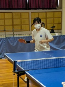「夏はサウナのような暑さ、冬は北極のような寒さの卓球場での練習も今日で最後となりました。その暑さと寒さをもう経験できないことは寂しいですが、そのような環境の中で3年間練習してきたことを、高総体で全て出し切りたいと思います。応援よろしくお願いします!」