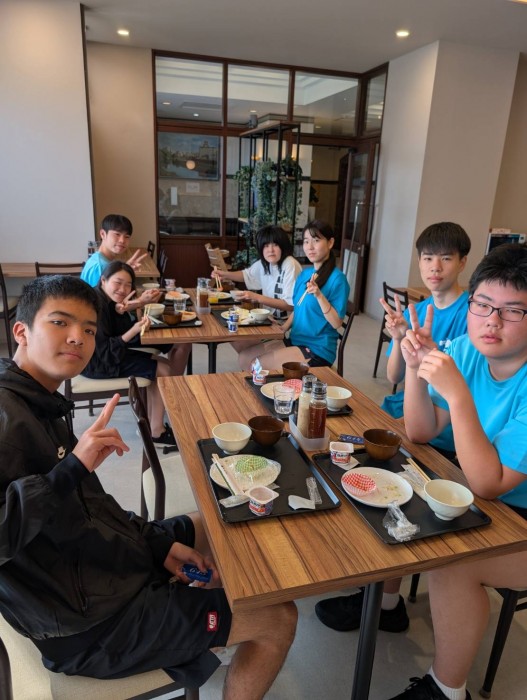 ということで、卓球部の朝食風景が届きましたので、早速お届けします。