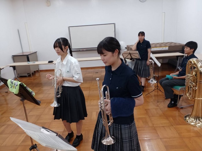 新体制になっての初めての学校外での演奏でしたが、部員一人ひとりが堂々と演奏をしていました。また、このイベントに一緒に出演をしていた、猶興館高校吹奏楽部のみなさん、南部中学校の吹奏楽部のみなさん、猶興館ダンス部のみなさんとのすぺしゃるステージも実現し、総勢40名ほどで演奏をしました。交流をしながら仲を深め、互いに学び合い、楽しく本番を終えることができました。