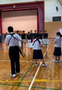 5月28日の放課後、毎年恒例のおにぎり差し入れをしました。この日は高総体の壮行式で「瞳をとじて」を演奏し、大急ぎで楽器を片付けておにぎりを握るというスケジュールでしたが、3回目となると3年生も手際がよく、「当たり」おにぎりを作る余裕までありました!本年度は60周年で全校生徒が高総体に参加します。選手はもちろん吹奏楽部も開会式で堂々と行進に参加してがんばってまいります。