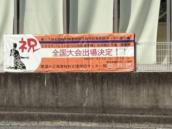 標記の件で「もうひとつの高校選手権大会2025presented by KOCHO『第11回全国知的障害特別支援学校高等部サッカー選手権大会』」出場を記念して、横断幕を作成していただきました。
