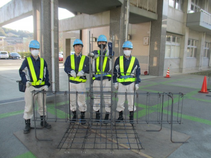 11月24日(木)に土木技術科2年生を対象に、長崎県鉄筋工事業協同組合の方を招聘して、3級鉄筋組立技能検定の実技課題を行い、地中梁の鉄筋を組立てる基礎技能である鉄筋の割り付けや鉄筋を結束線でハッカーを用いて構造物を正確に組み上げるために必要な基礎知識とその方法を体験して学ぶことができました。技術者の方から熟練した高度な技術を学ぶことにより土木への憧れや、講師の方との交流を通じて建設業に対する意欲・関心の高揚が促進されました。