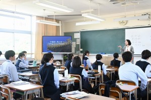 5月14日(水)、文理探究科1年を対象に長崎外国語大学から5人の先生を講師に迎え、長崎外国語大学研修が行われました。4月の研修ガイダンス後、中国語・韓国語・フランス語・ドイツ語の4つのグループに分かれ、本格的に学び始めます。講師の先生方から自己紹介の仕方やあいさつなど言語や文化に関する講義を受け、1月に中間発表、3月に発表会を行います。