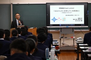 11月13日(木)午後、長崎県立大学国際社会学部国際社会学科 釘島正智特任教授を講師としてお招きし、文理探究科3年生の生徒を対象に特別講義を行いました。