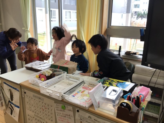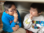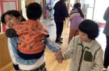 友達と手をつないで、「どこ?」と探したり、「しーっ」と隠れたりしました!