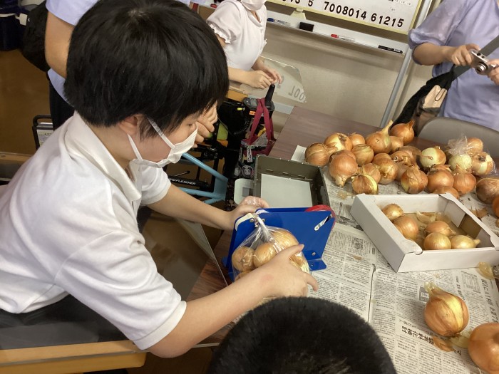 職場見学では、本校の卒業生でもある利用者さんから仕事についての話を聞いたり、「玉ねぎの袋詰め、計量」の体験までさせていただきました。卒業生の方の話はとても貴重でありがたかったです。「キャッチアップインサポート」の皆様、ありがとうございました。