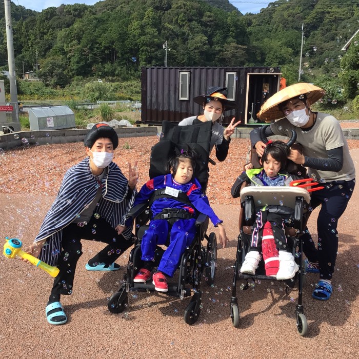 「カラフル」では、ハロウィーンの仮装、散歩、足浴などを体験させていただきました。