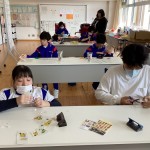 1グループ:ラミネートフィルムを用いた制作作業(キーホルダー)
