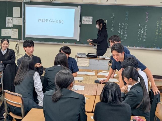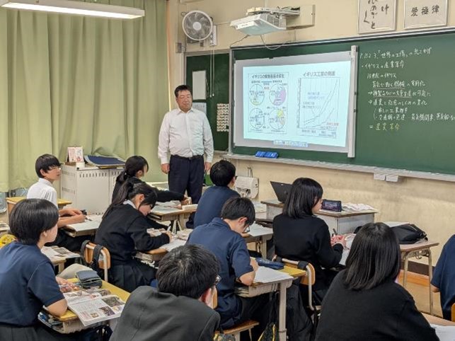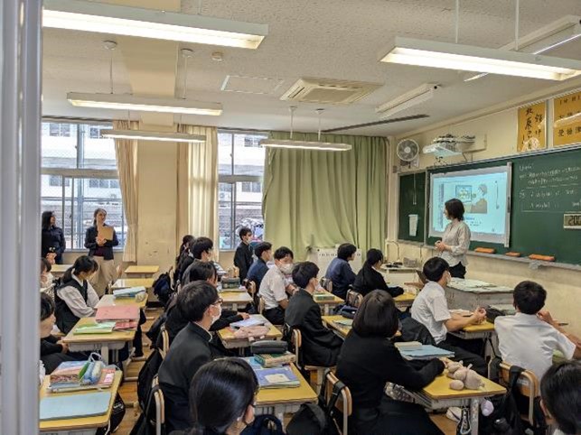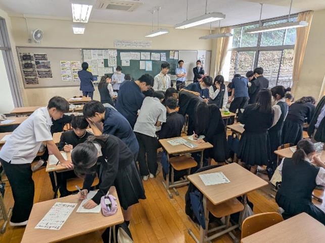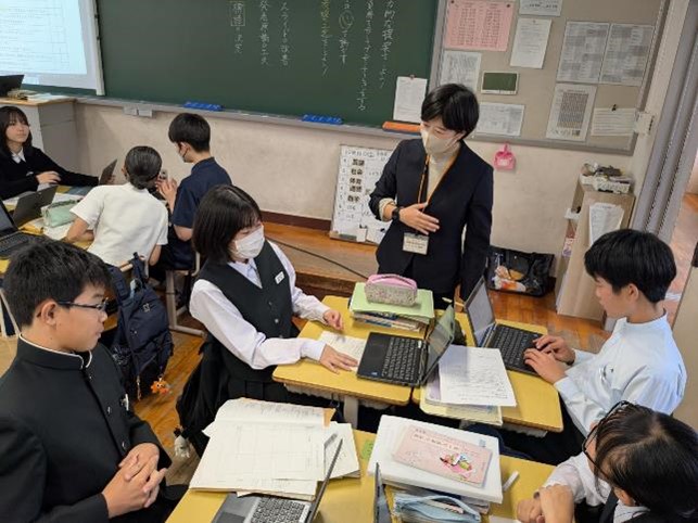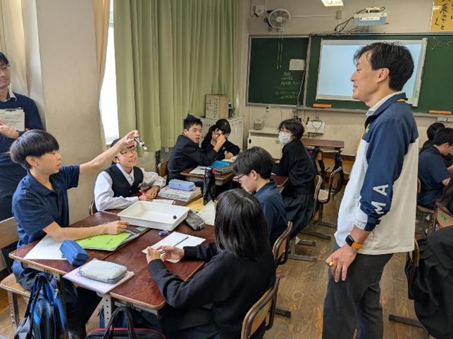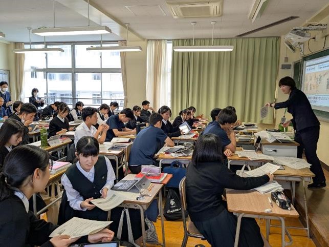 基礎学力の定着と、対話的で創造的な授業を目指した研究授業が行われ、多くの参観者の前で、生徒たちも普段以上に生き生きとした表情で学習に取り組んでいました。