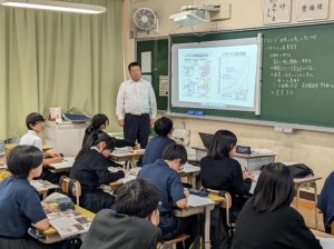 長崎県教育庁高校教育課から3名の指導主事が、また、市内外の中学校の先生、高校の先生も授業参観に来られ、授業終了後には各教科で研究協議を行いました。