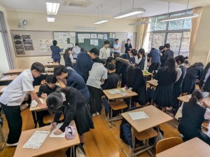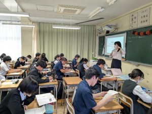 5時間目に中学校の5クラス、6時間目に高校の5クラスで、国語、社会(高校は日本史探究)、数学、理科、英語の研究授業を行いました。