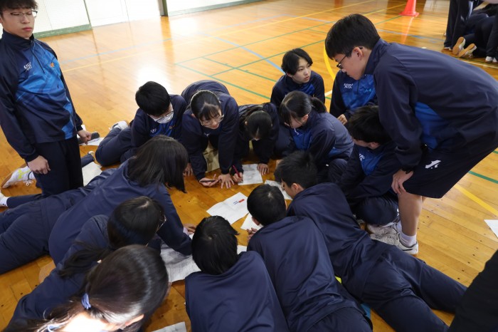 また「謎解きゲーム」では問題にグループで取り組み、3年生が積極的にアイディアを出している姿が印象的でした。