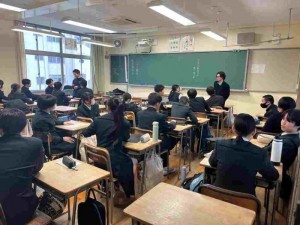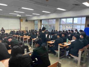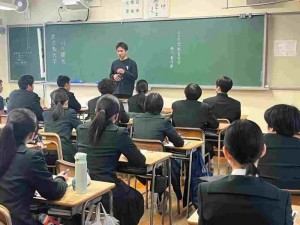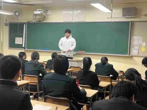 1月9日(金)、主に二十歳の成人を迎える本校卒業生23名が来校し、高校1・2年生へ進路講話をしてくれました。
