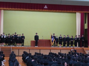 旧役員三年生と新生徒会長の挨拶がありました。